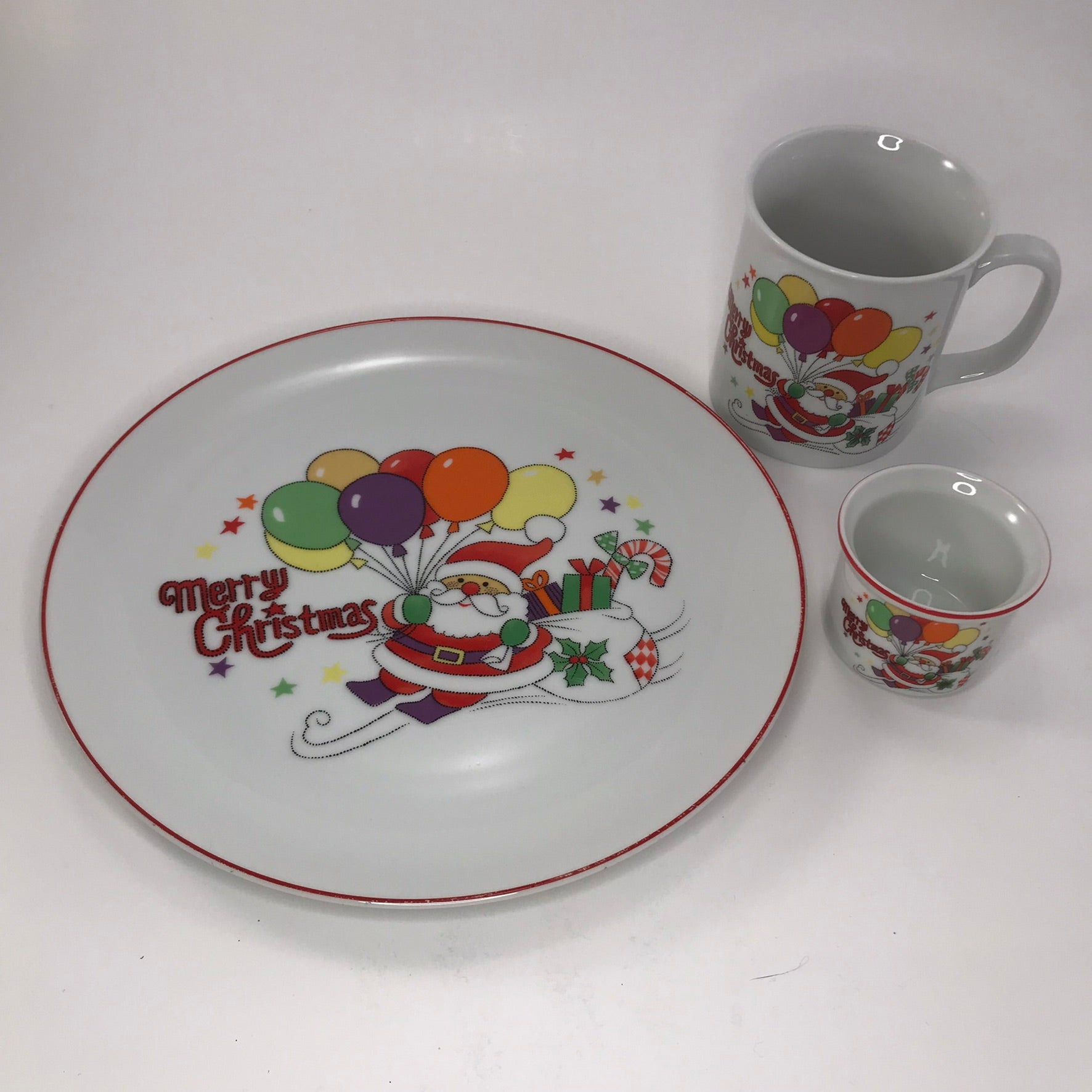 Merry Christmas Santa and Balloons Plate and Mugs Set