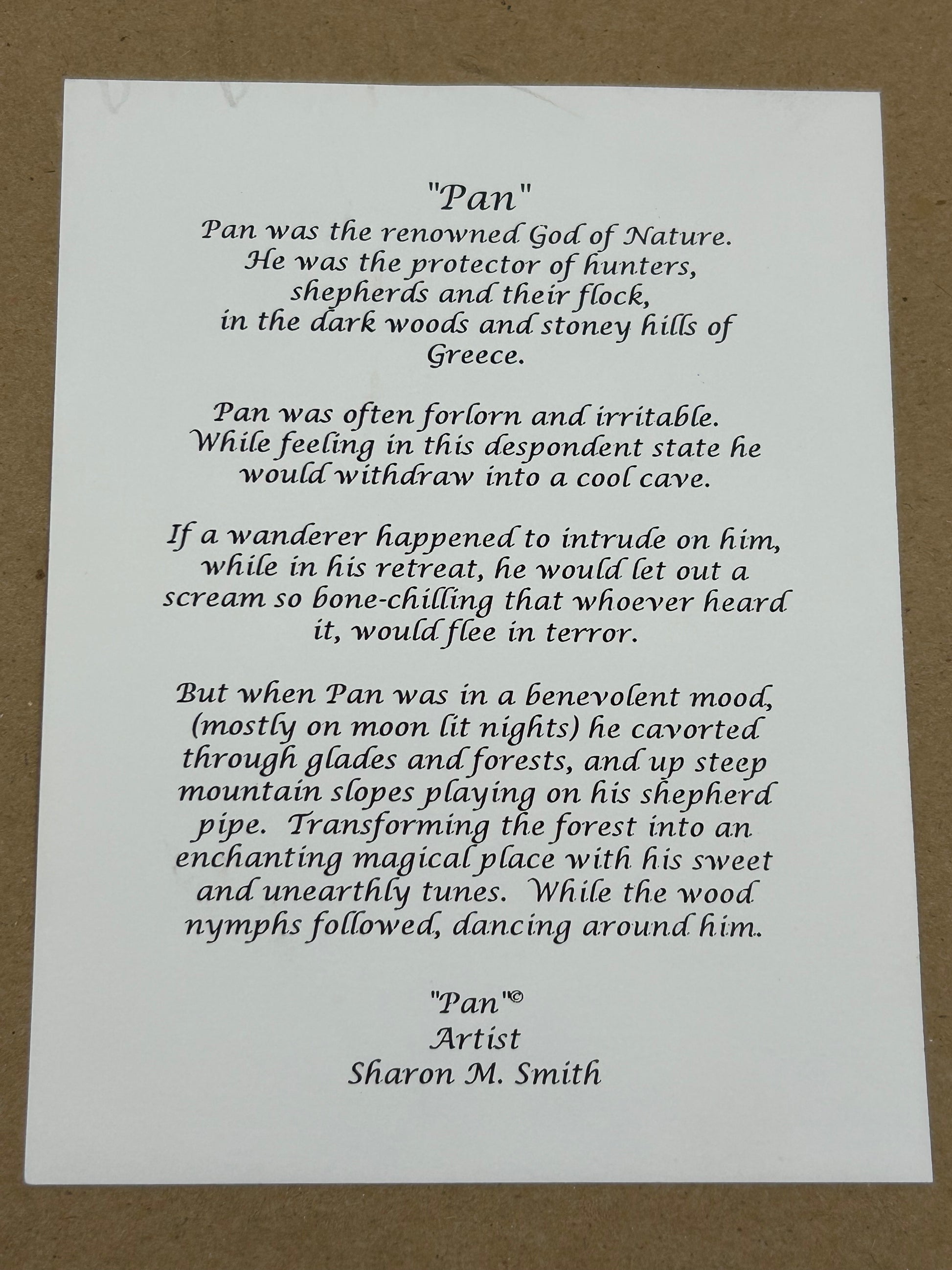 Pan The God of Shepherds and Hunters Framed Print 1994 - Artist Sharon M Smith