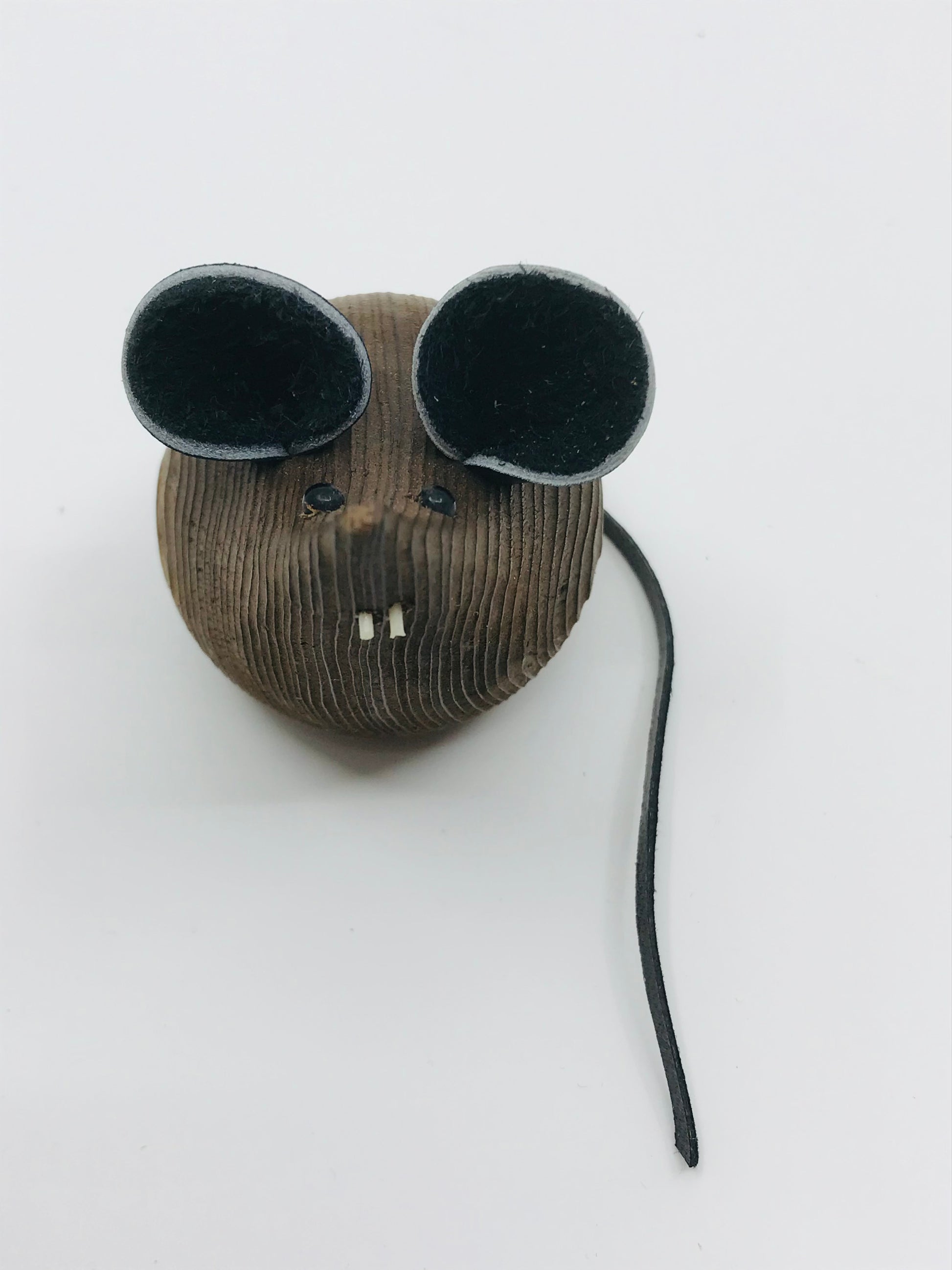 Ridged wooden texture, soft leather ears and tail.